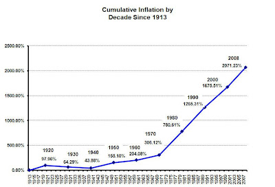 This figure shows that the money supply skyrocketed while the dollar value plunged by 96% thus plummeting the purchasing power.
