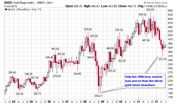 Gold mining companies / gold price ratio